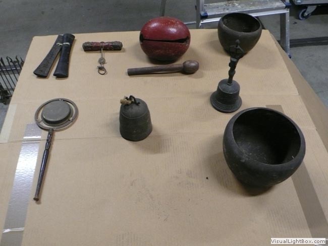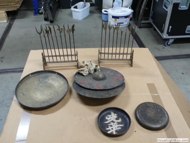 These are some of the items used on altars during festivals. The Taoist priest’s hat was given to me by the owner of a Singapore paper shop as their contribution to the collection.