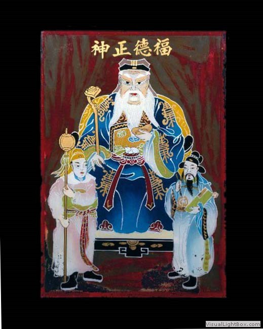 with the glass in frot of it having a circle cut out so the deity’s face was