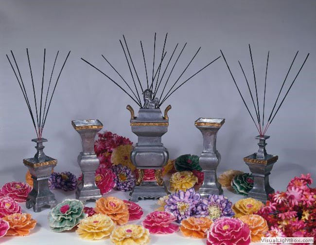 These are some of the items used on altars during festivals. The Taoist priest’s hat was given to me by the owner of a Singapore paper shop as their contribution to the collection.