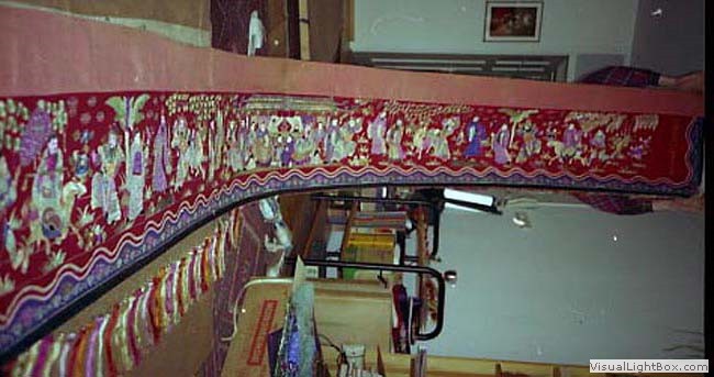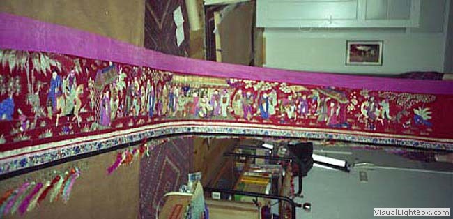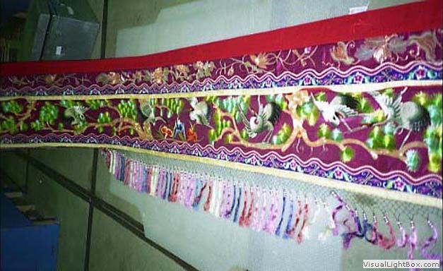 Since cloths like these were seldom used; most families would not invest in the purchase of such cloths and rent them for the occasion from the paper shops. These dealt with all aspects of festivals and funerals and were knowledgeable on the subject.