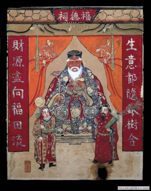 not covered. The burning of incense over the year gave the face its dark colour.