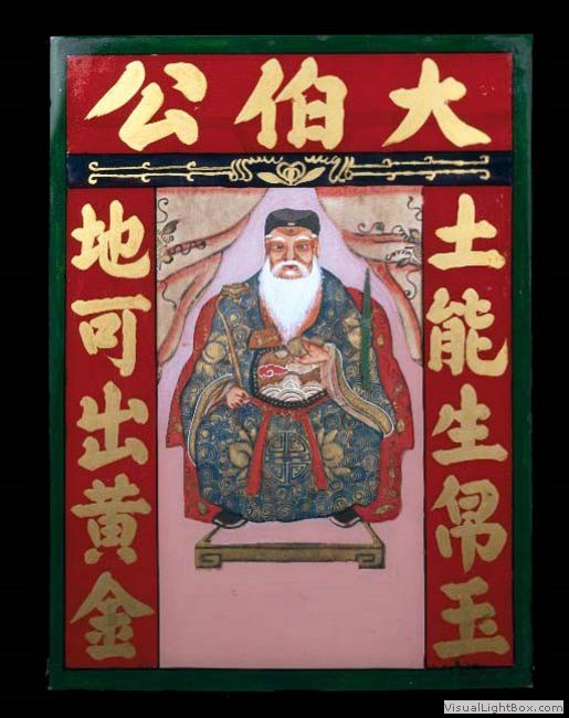 with the glass in frot of it having a circle cut out so the deity’s face was